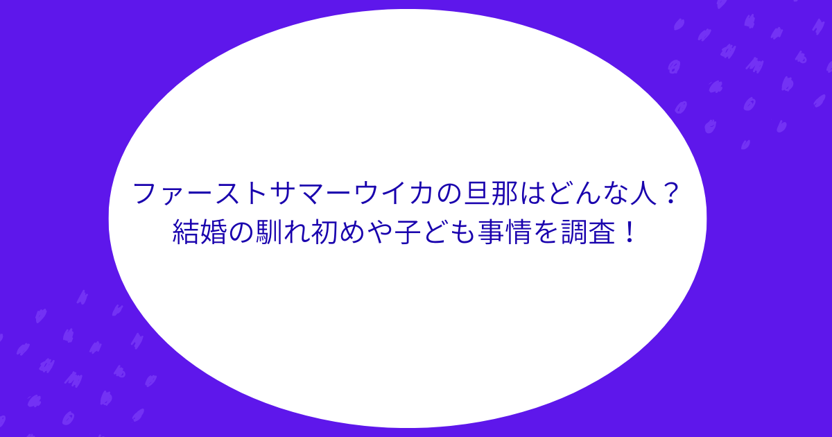 今回は、ファーストサマーウイカさんの旦那さんについて、結婚の経緯や子ども事情を含めて詳しく調査しました。