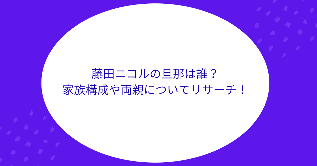 今回は、藤田ニコルさんの旦那や家族構成、両親について詳しくリサーチしてみました。