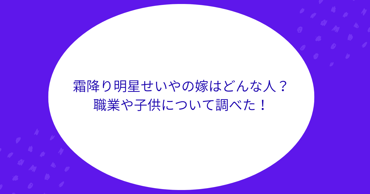 今回は、霜降り明星せいやさんの奥さんについて、様々な情報を調べてみました。