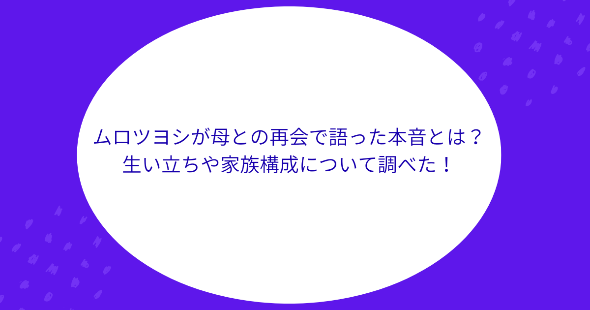 ムロツヨシさんの母親との再会、生い立ち、家族構成について見てきました。